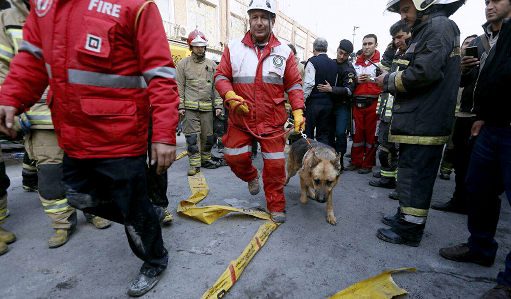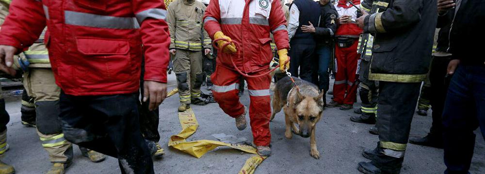 Three sniffer dogs Hans, Borden and Fidel from the dog squad at Iran’s Anti-Narcotics Police, who as a rule help law enforcement forces find illegal drugs, were at the forefront of efforts of the rescue teams to find the bodies buried under the rubble in the recent Plasco Building collapse in Tehran.