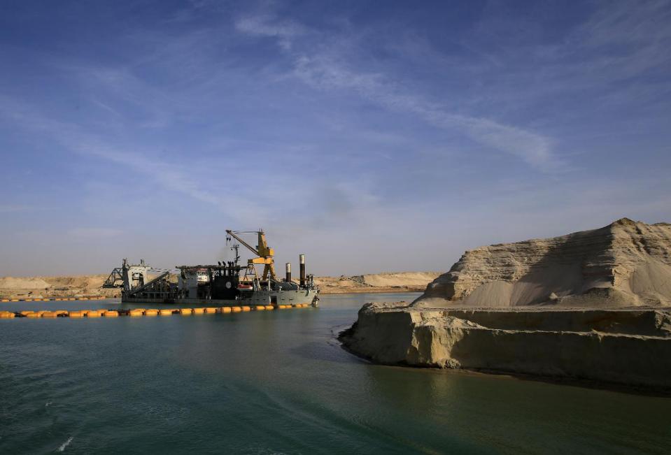 Bulldozers push earth and dredgers spit mud round the clock at Egypt’s Suez Canal in a race to quickly expand the strategic waterway for two-way traffic, a project trumpeted by President Abdel-Fattah el-Sissi to revive both the country’s damaged economy and visions of nationalist glory, Yahoo reported.