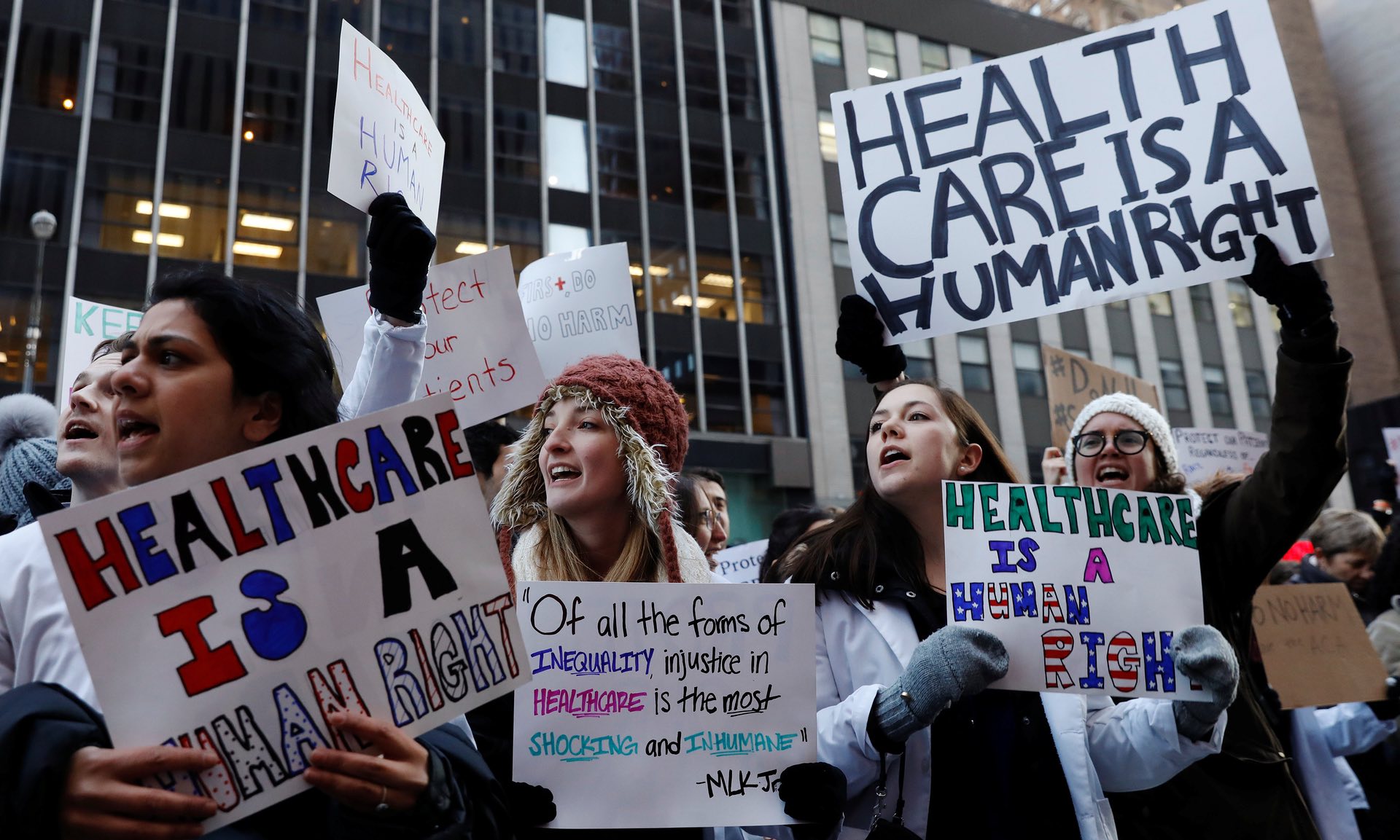 Donald Trump’s comments on Sunday suggesting that a replacement for Obamacare may not arrive until 2018 coincides with crowds turning out to pressure Republicans not to scrap the system too hastily.